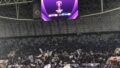 いつものように試合前の練習があり、その間に選手の応援歌を歌っていくのですが、まだ選手がピッチにおられる間に、急に選手紹介の動画が始まって、びっくり。